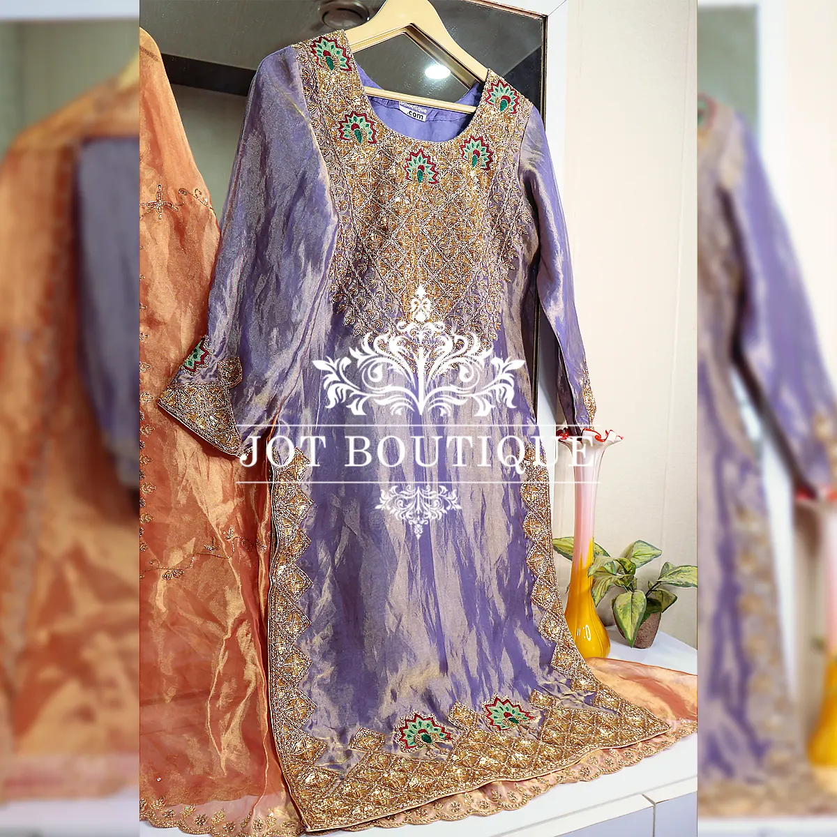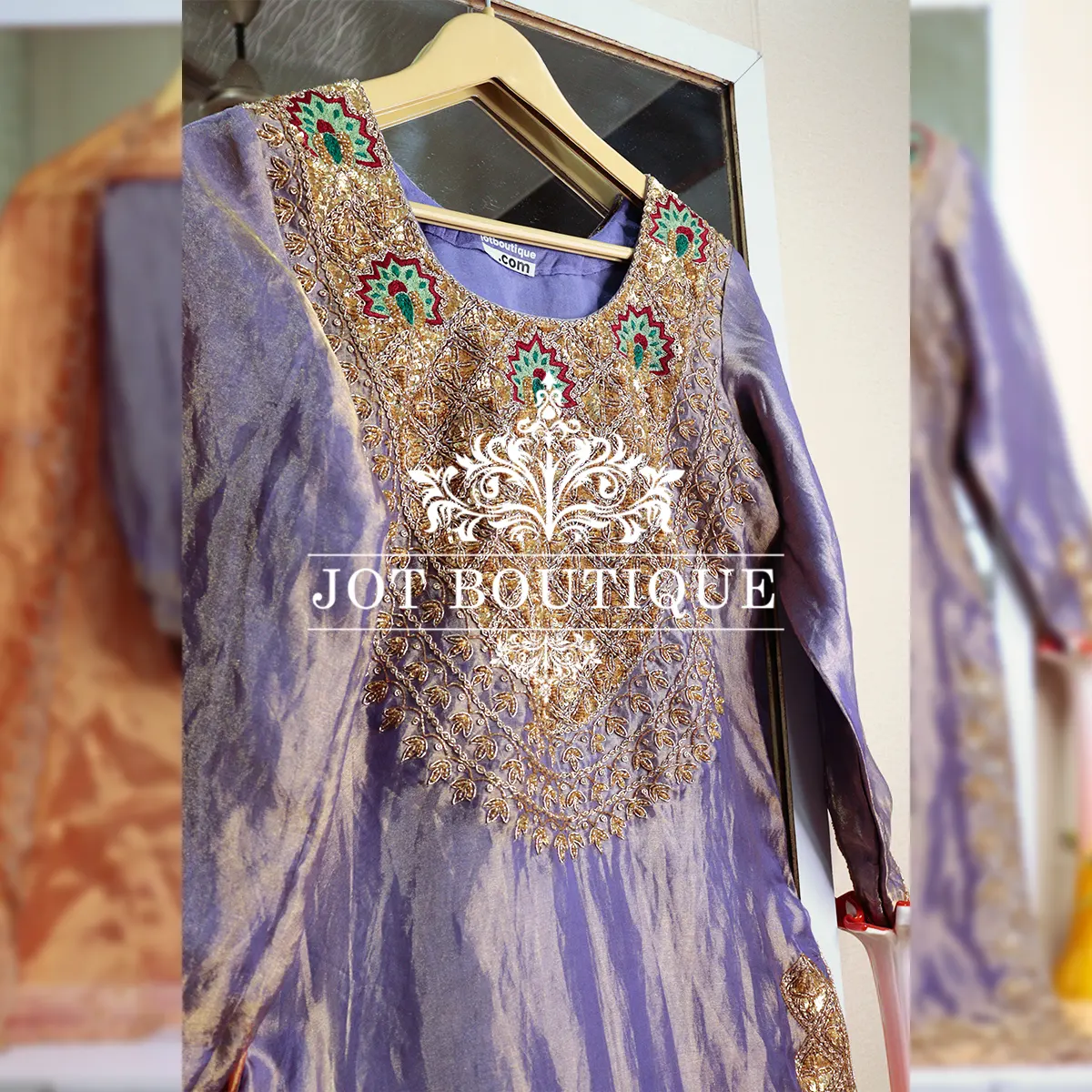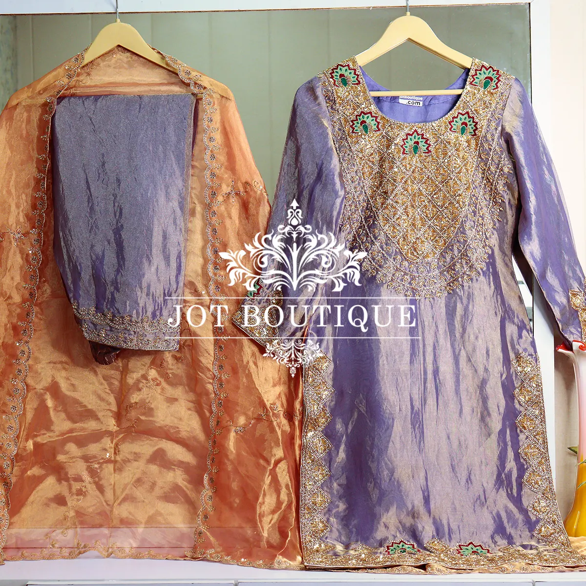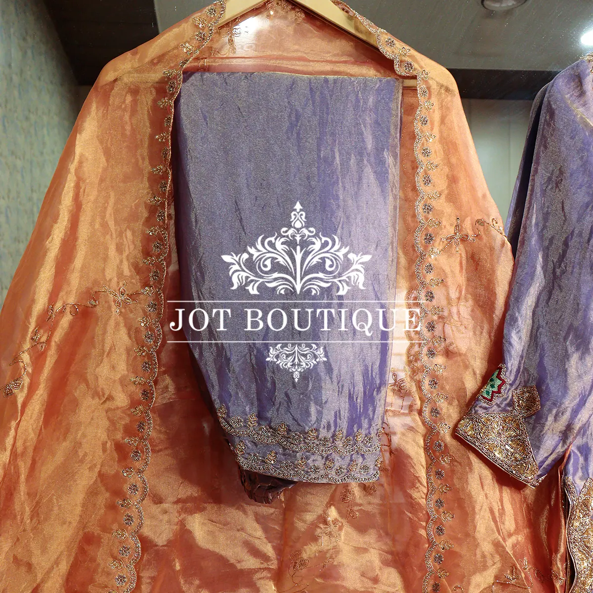 Jot Boutique presents a stunning Punjabi suit crafted with soft, premium fabric for unmatched comfort and grace. This ensemble features intricate sippi, katdana, dori, and thread work, showcasing traditional artistry with a contemporary touch.